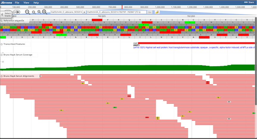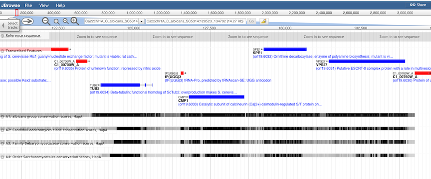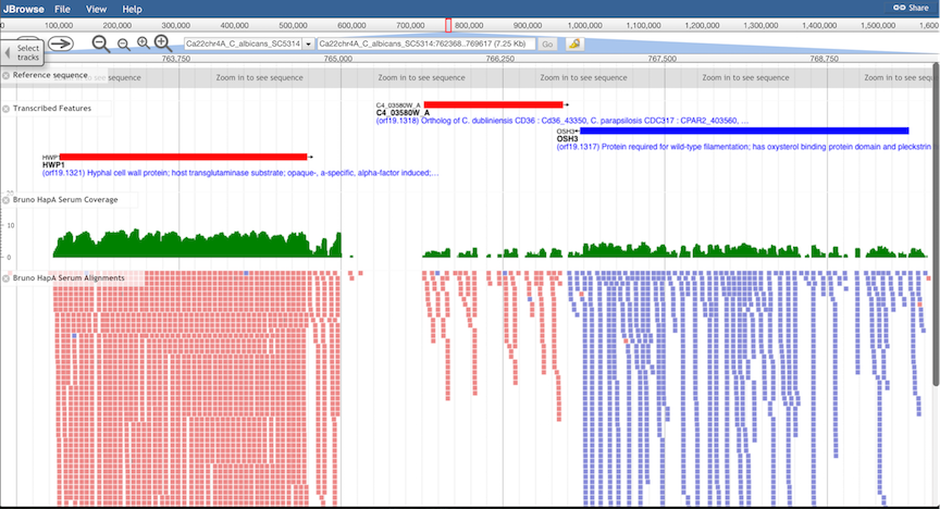 Please note that the two haplotypes of C. albicans SC5314 Assembly 22 are displayed