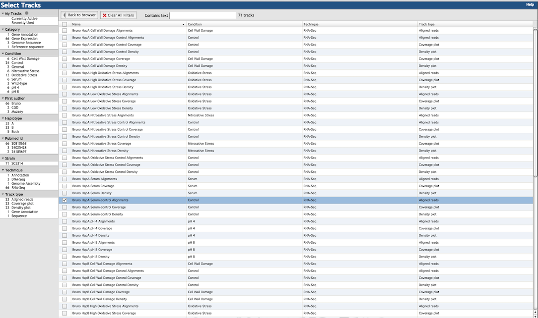 narrow down the track choices. For example, you may filter by experimental technique (RNA-Seq, DNA-Seq, etc.),
